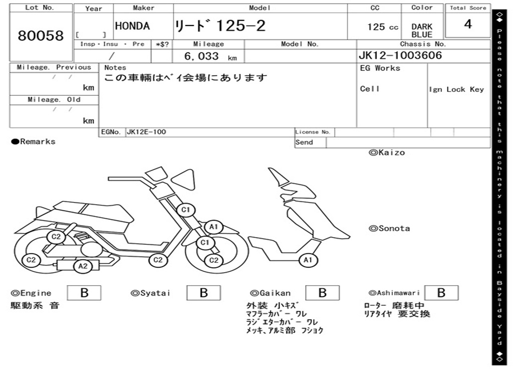 | Номер рамы / VIN | JK12-1003606 |