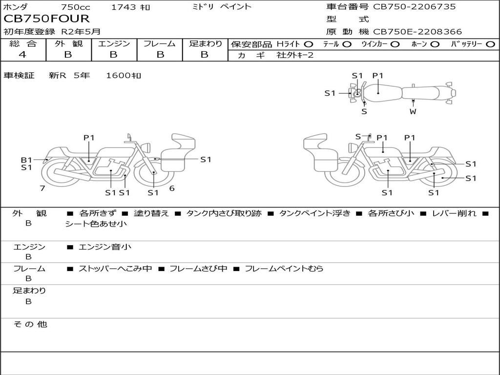 | Номер рамы / VIN | CB750-2206735 |