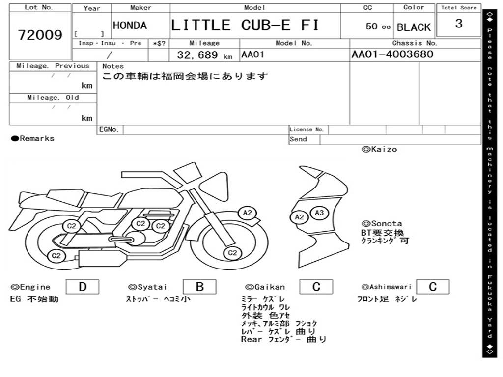 | Номер рамы / VIN | AA01-4008680 |