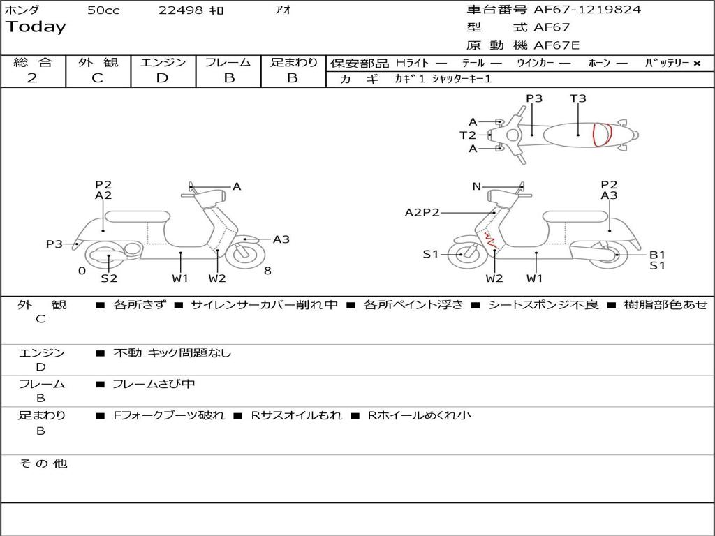 | Номер рамы / VIN | AF67-1219824 |