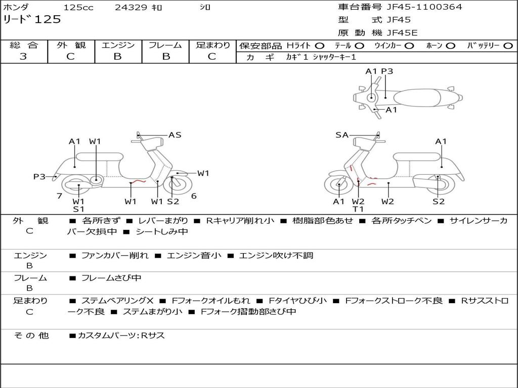 | Номер рамы / VIN | JF45-1100364 |