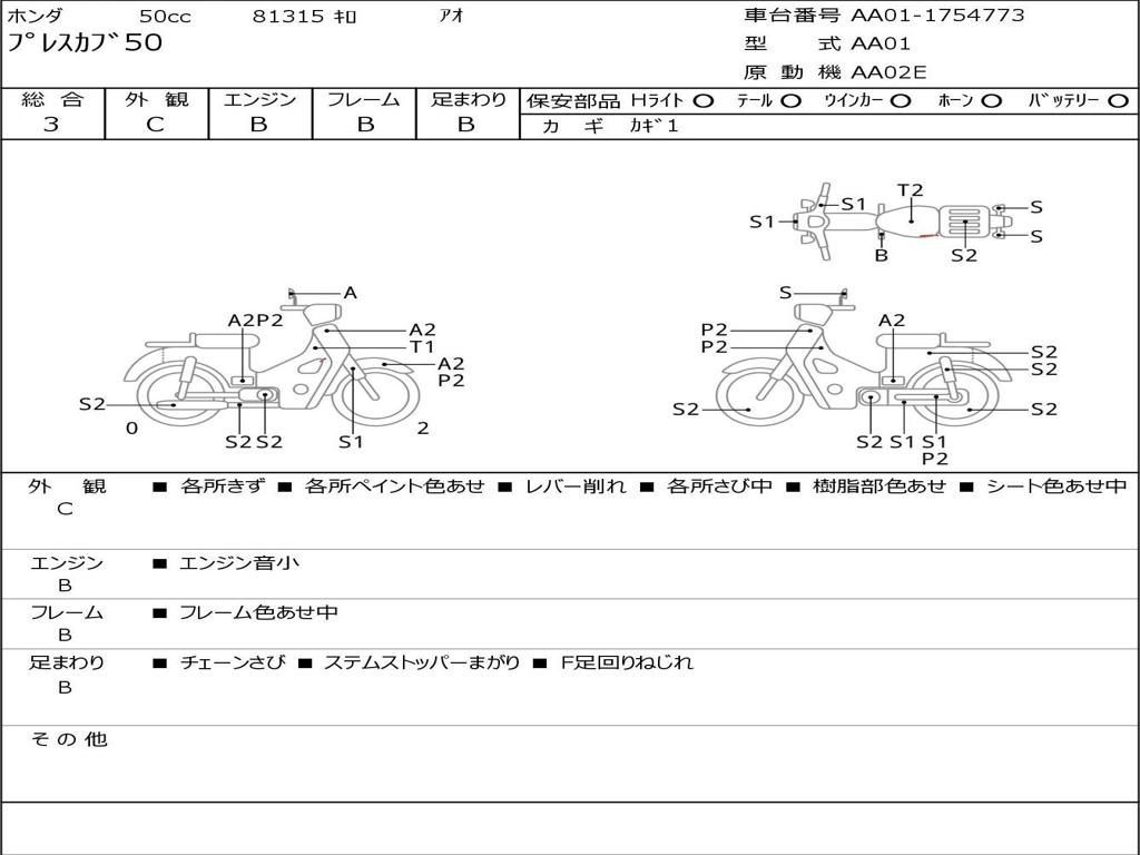 | Номер рамы / VIN | AA01-1754773 |