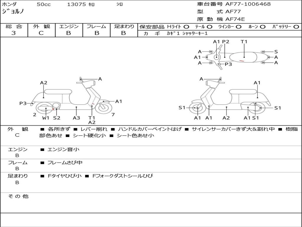 | Номер рамы / VIN | AF77-1006468 |