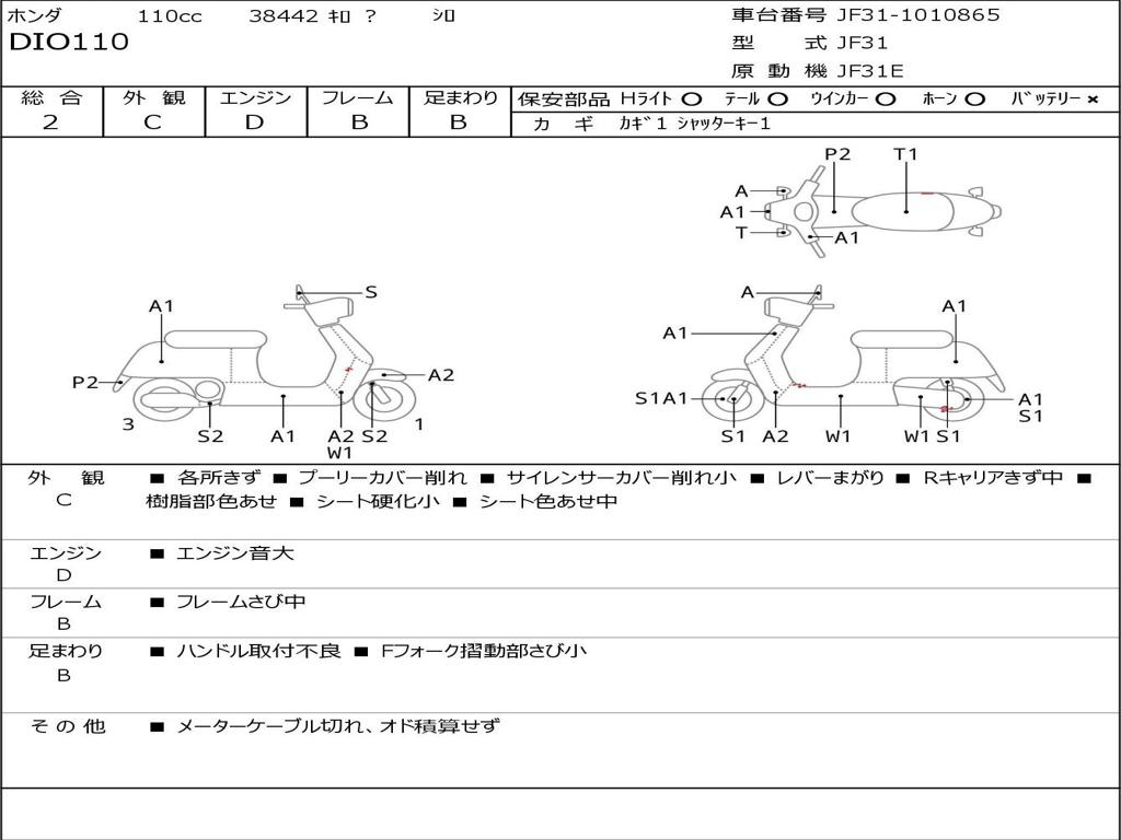 | Номер рамы / VIN | JF31-1010865 |