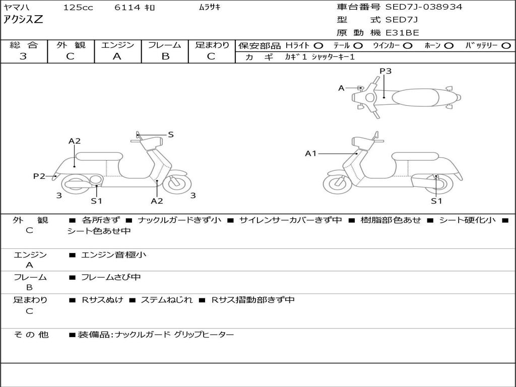 | Номер рамы / VIN | SED7J-038934 |