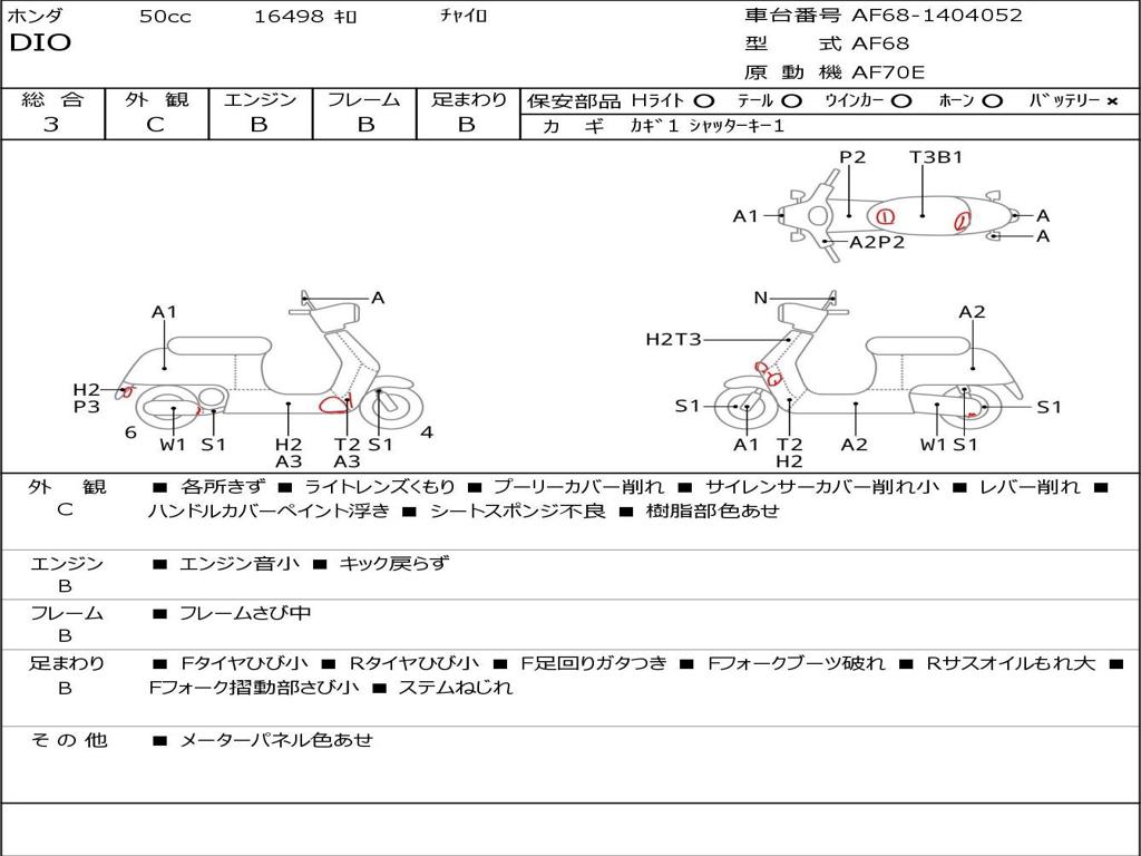 | Номер рамы / VIN | AF68-1404052 |