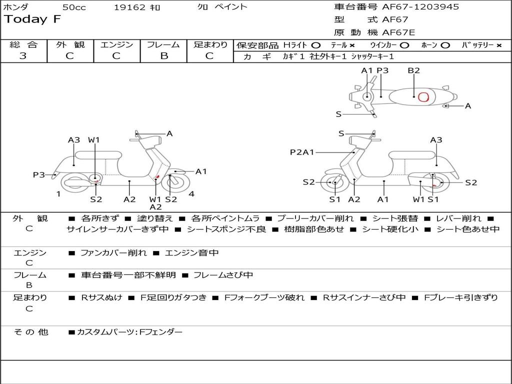 | Номер рамы / VIN | AF67-1203945 |