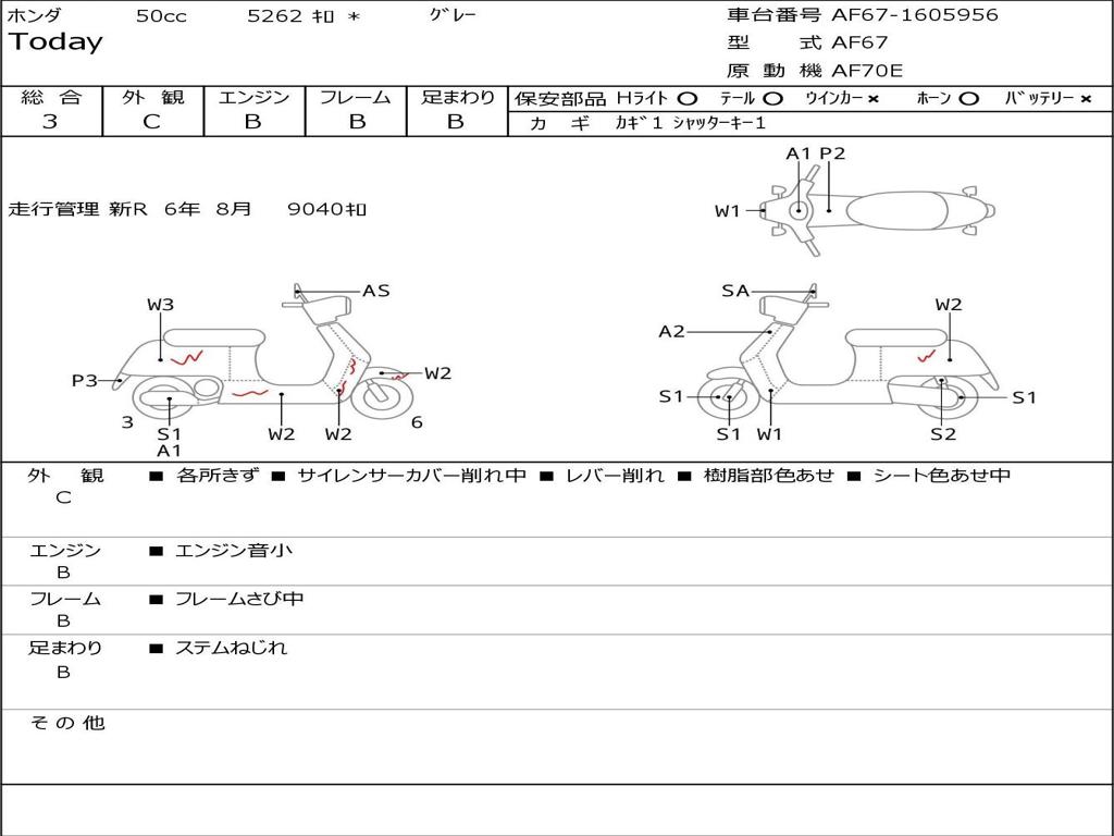 | Номер рамы / VIN | AF67-1605956 |