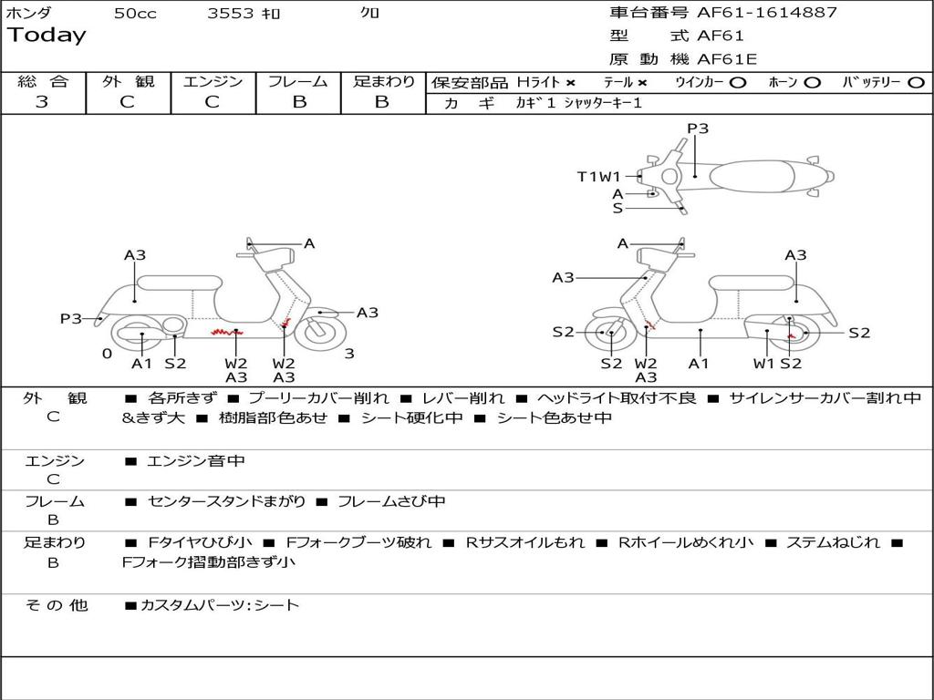 | Номер рамы / VIN | AF61-1614887 |