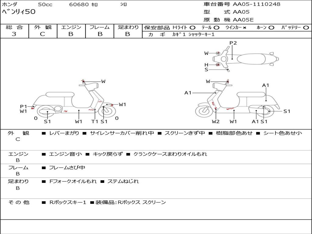| Номер рамы / VIN | AA05-1110248 |