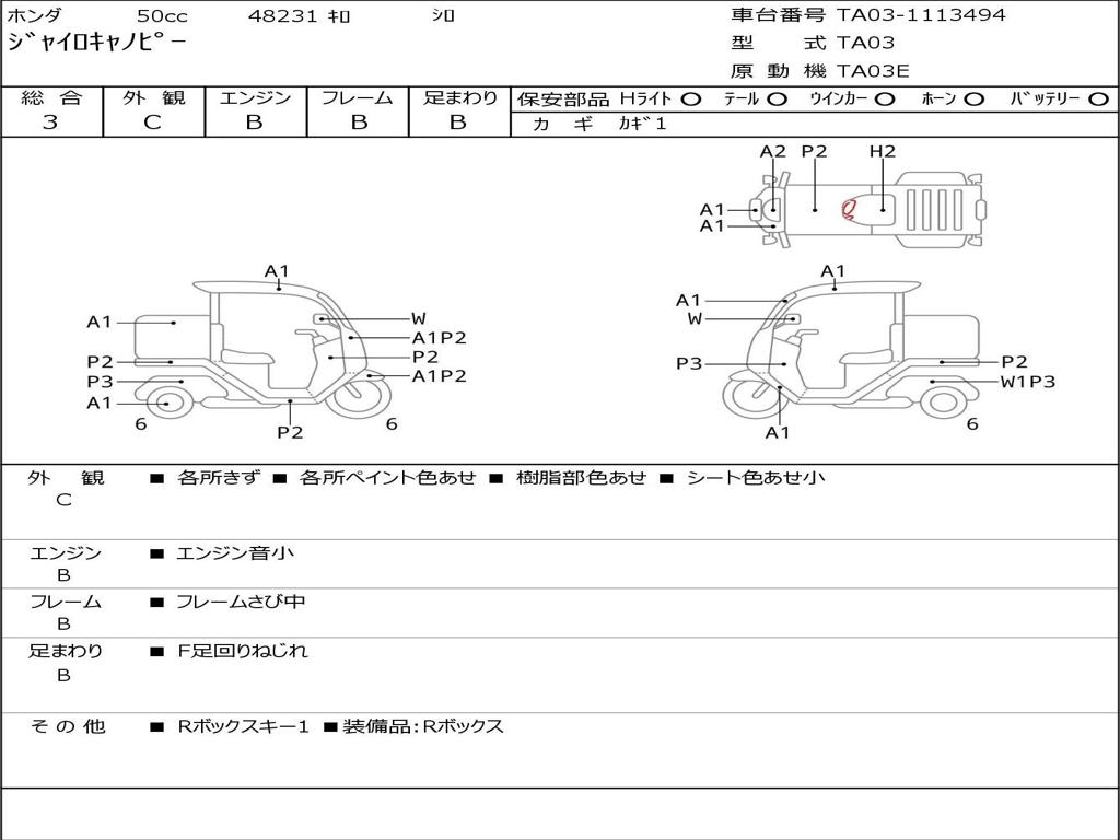 | Номер рамы / VIN | TA03-1113494 |