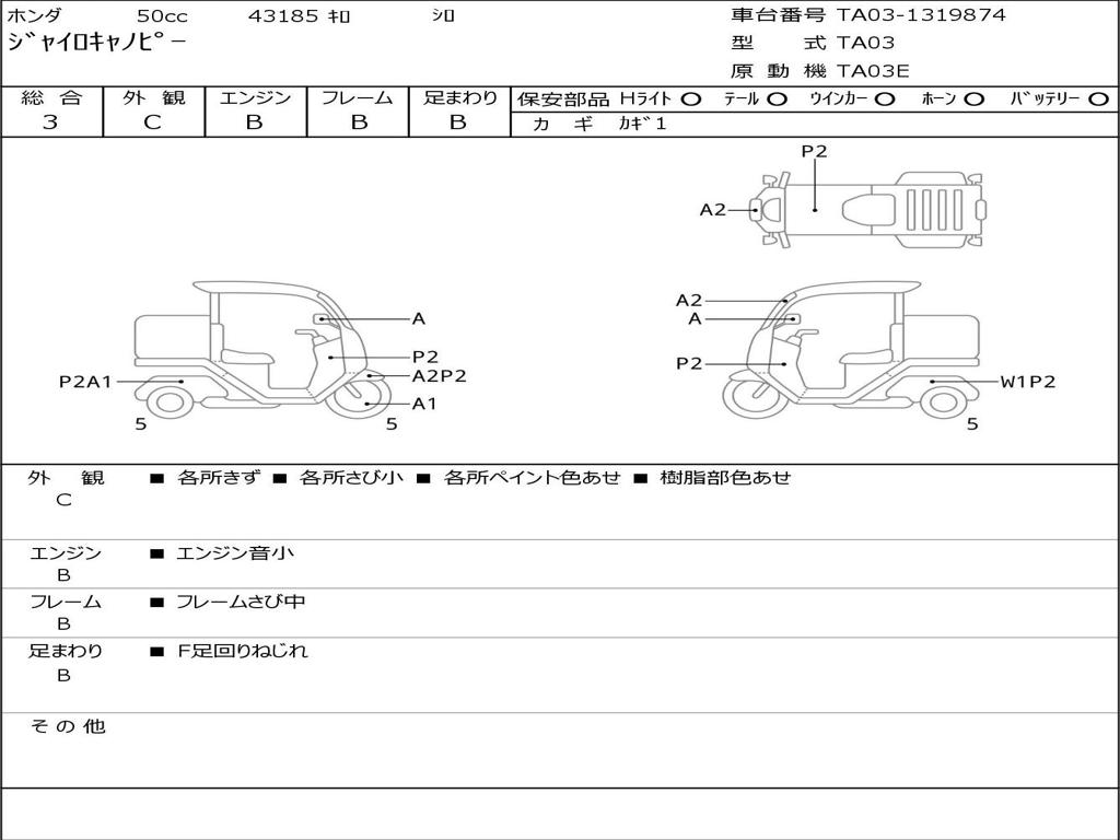 | Номер рамы / VIN | TA03-1319874 |