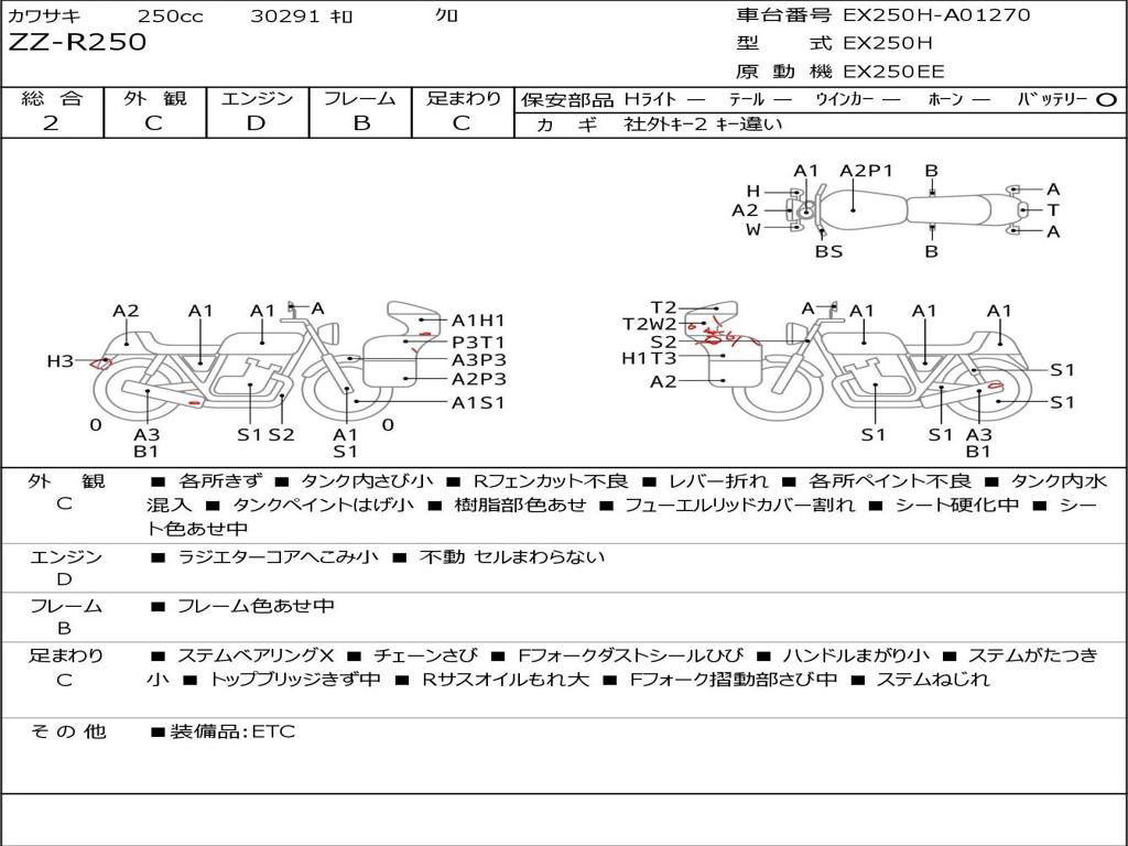 | Номер рамы / VIN | EX250H-A01270 |