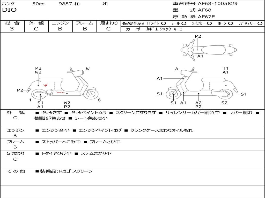 | Номер рамы / VIN | AF68-1005829 |