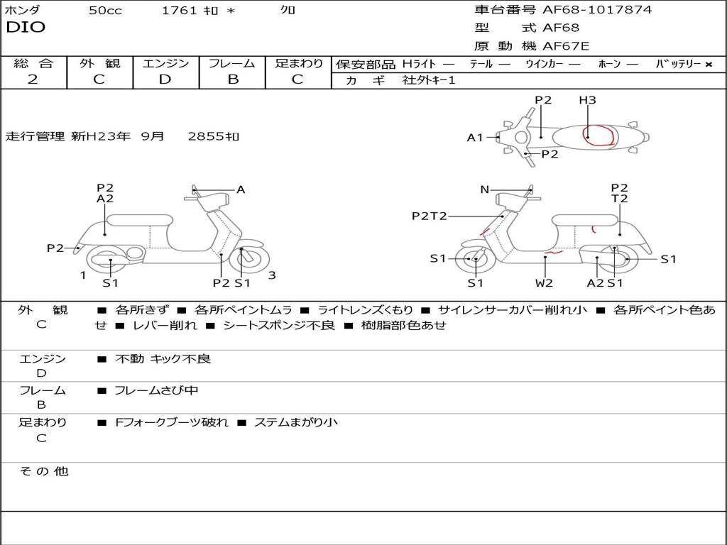| Номер рамы / VIN | AF68-1017874 |