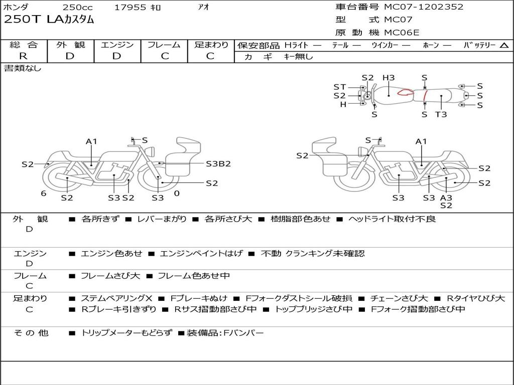 | Номер рамы / VIN | MC07-1202352 |