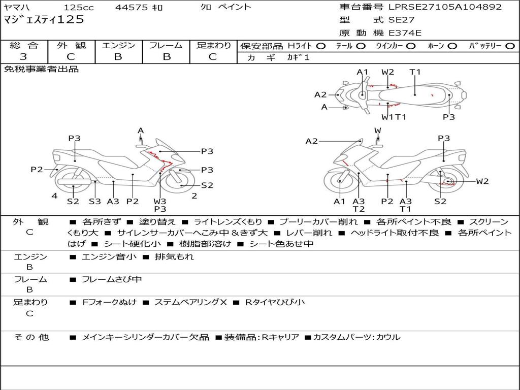 | Номер рамы / VIN | LPRSE27105A104892 |