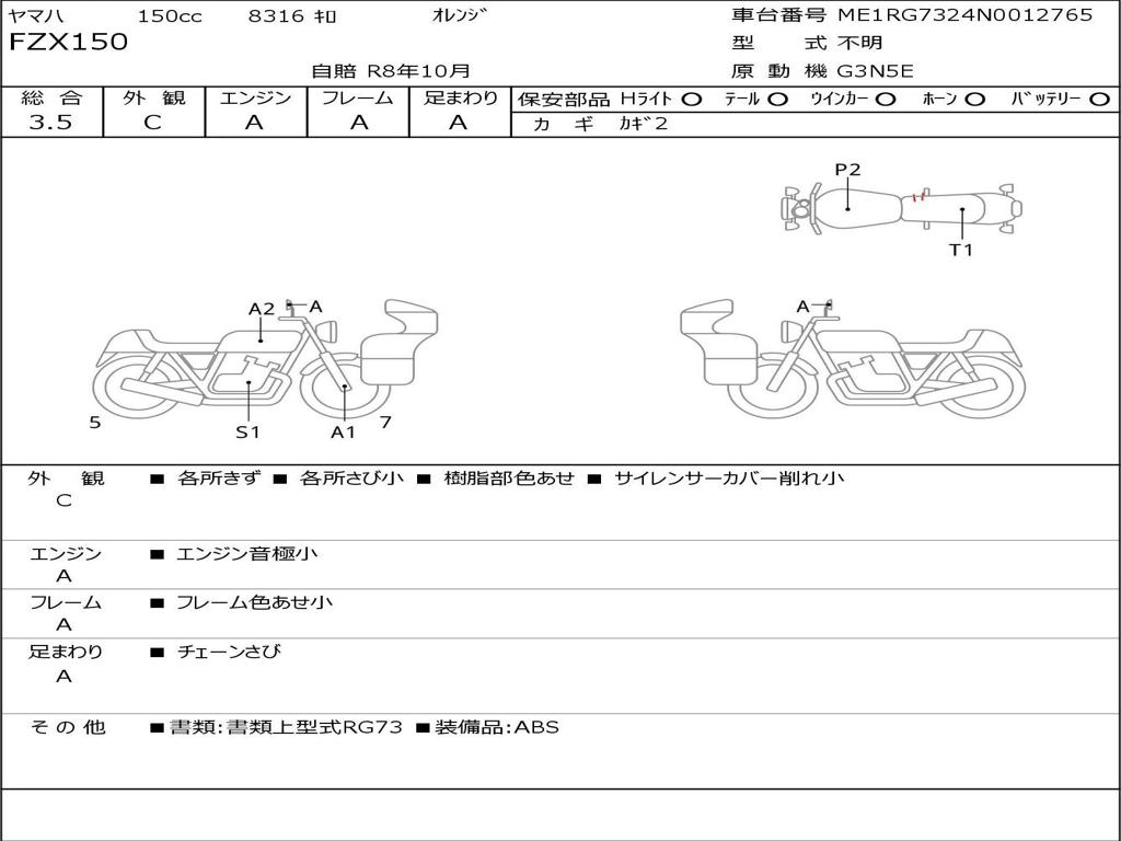 | Номер рамы / VIN | ME1RG7324N0012765 |