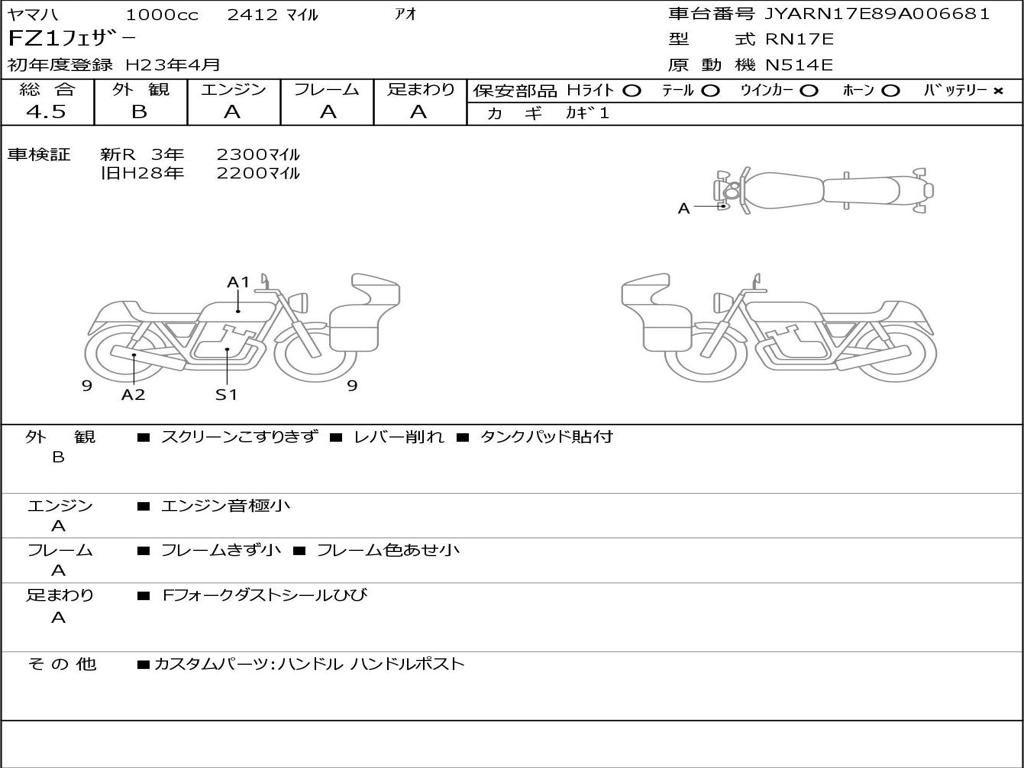 | Номер рамы / VIN | JYARN17E89A006681 |
