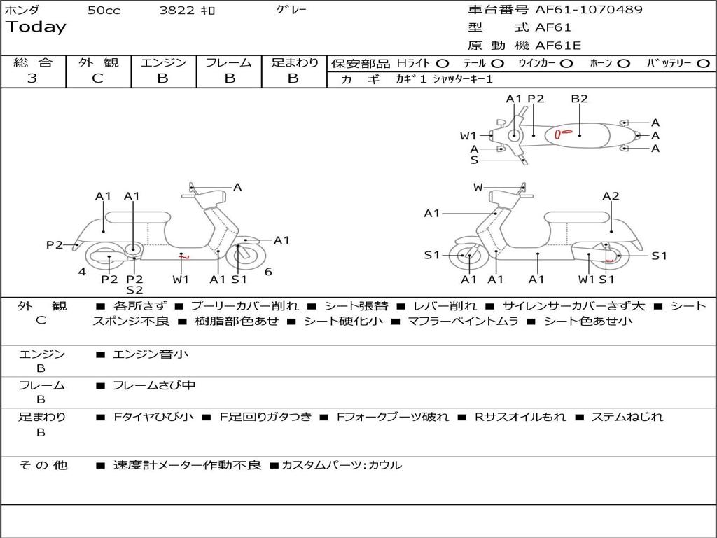 | Номер рамы / VIN | AF61-1070489 |