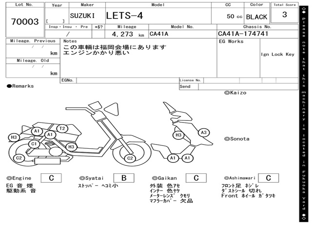 | Номер рамы / VIN | CA41A-174741 |