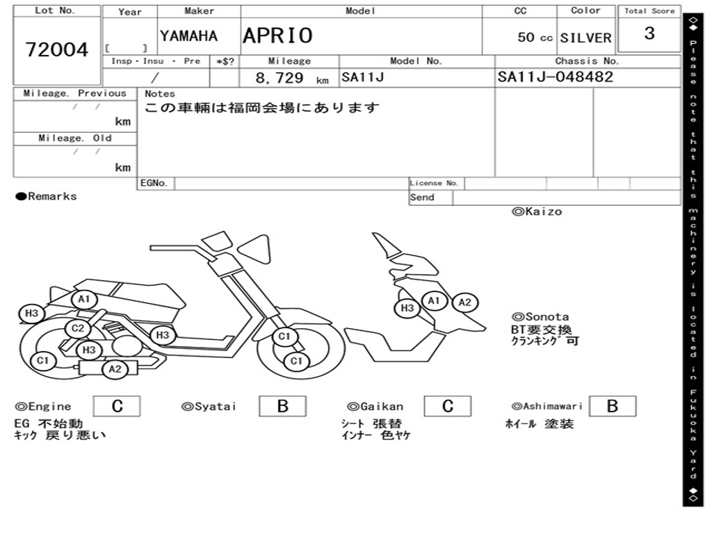 | Номер рамы / VIN | SA11J-048482 |