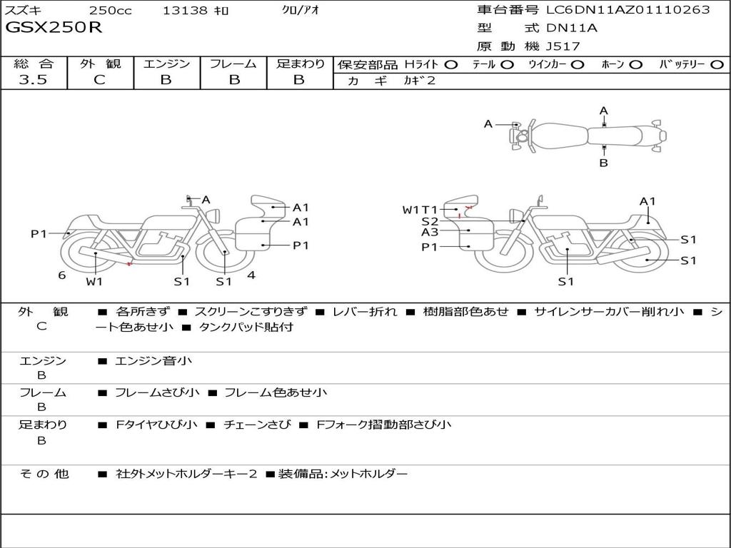 | Отметка об участии мотоцикла в авариях | Мотоцикл не участвовал в ДТП |