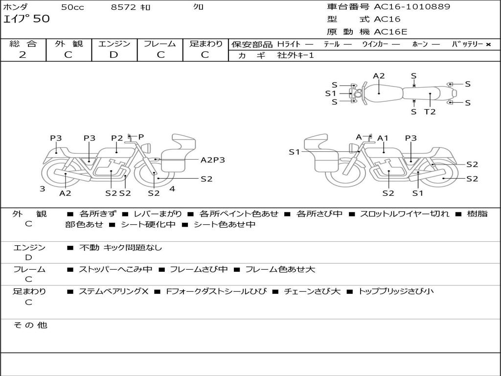 | Номер рамы / VIN | AC16-1010889 |