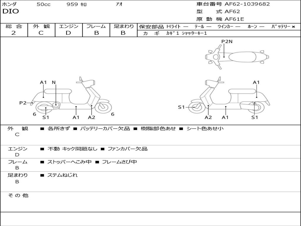 | Номер рамы / VIN | AF62-1039682 |