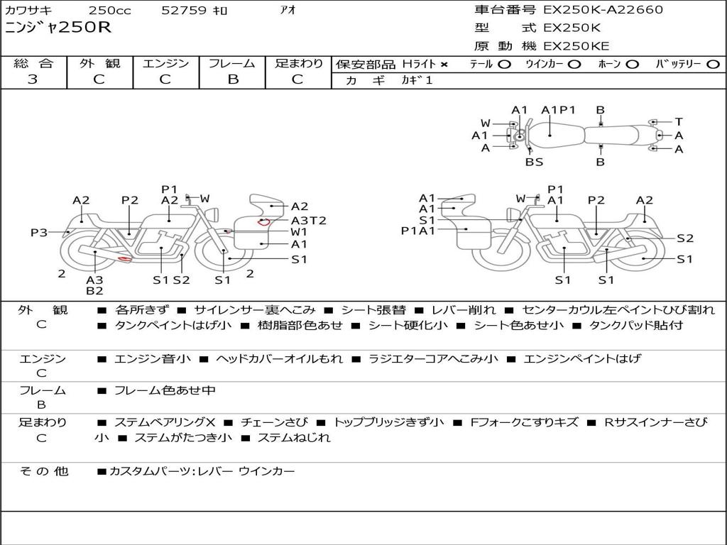 Номер рамы / VIN | EX250K-A22660 |