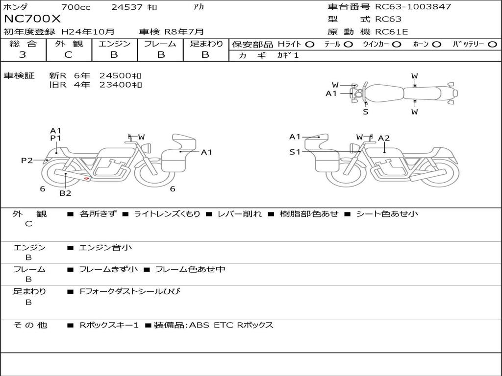 | Номер рамы / VIN | RC63-1003847 |