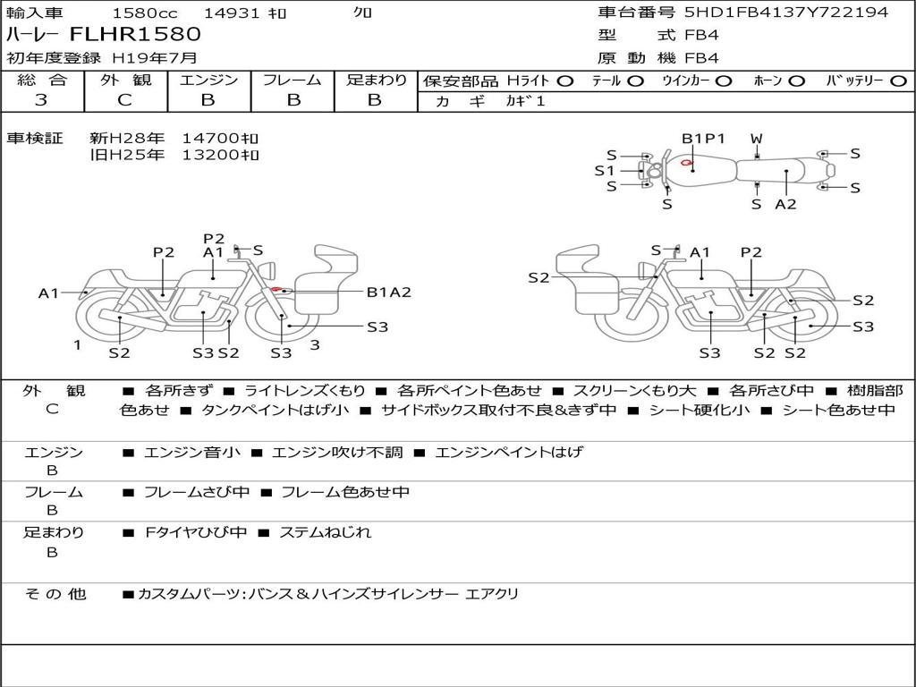 | Номер рамы / VIN | 5HD1FB4137Y722194 |