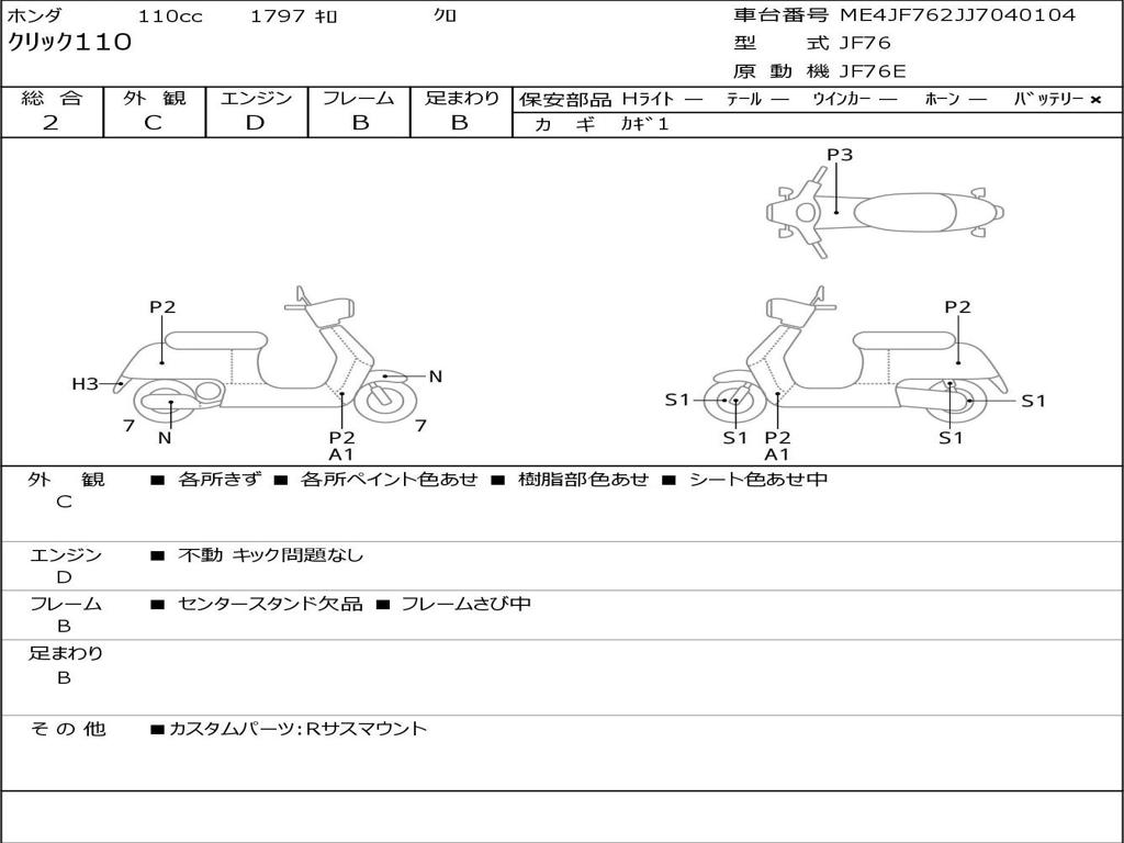 | Номер рамы / VIN | ME4JF762JJ7040104 |