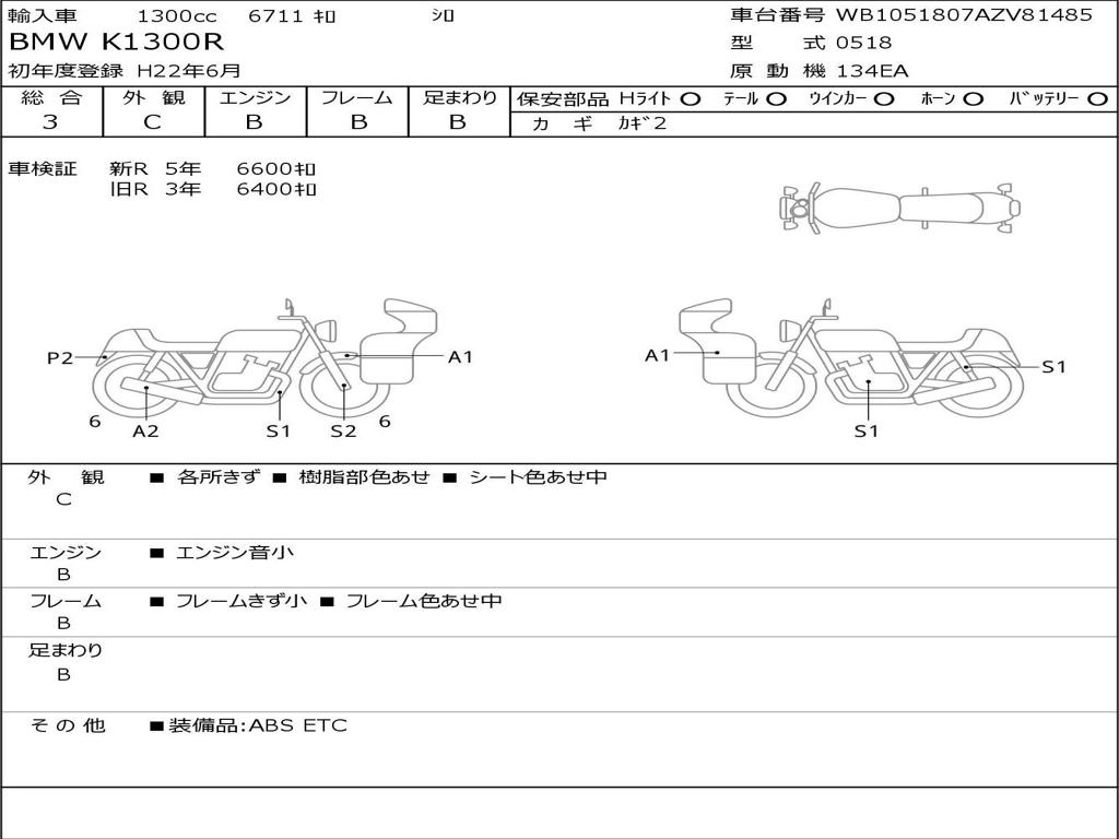 | Номер рамы / VIN | WB1051807AZV81485 |