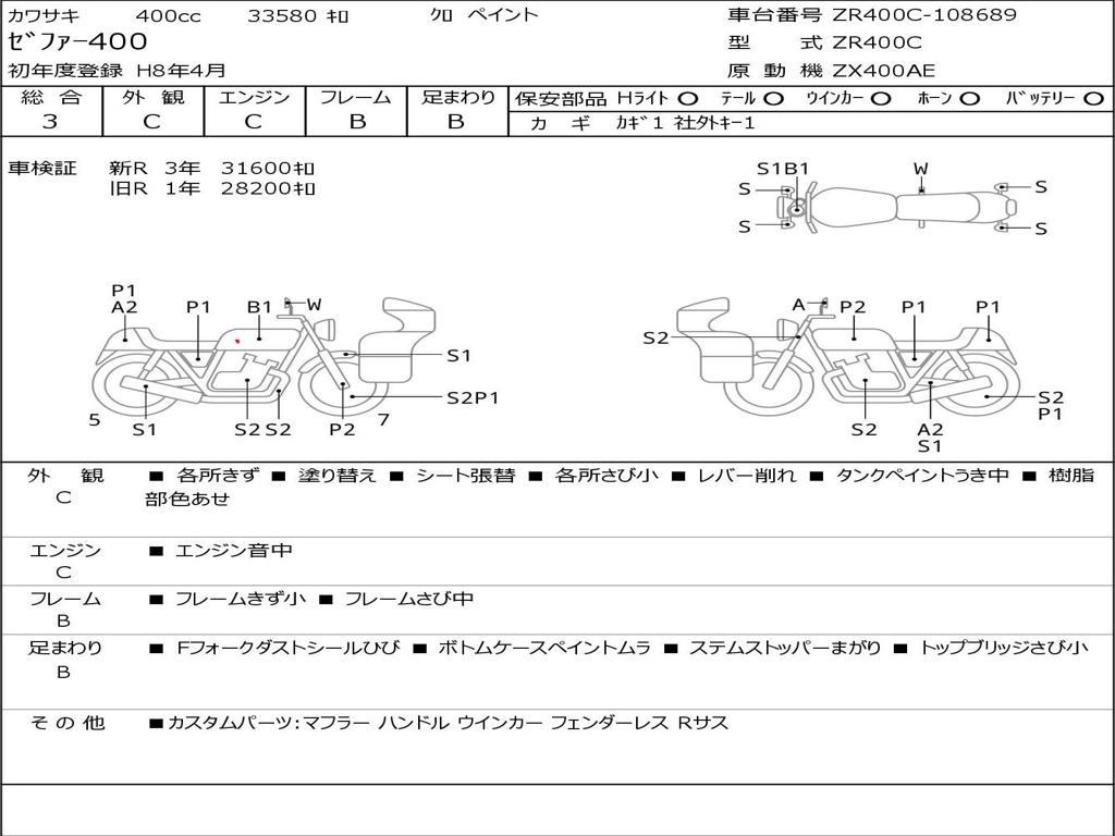 | Номер рамы / VIN | ZR400C-108689 |