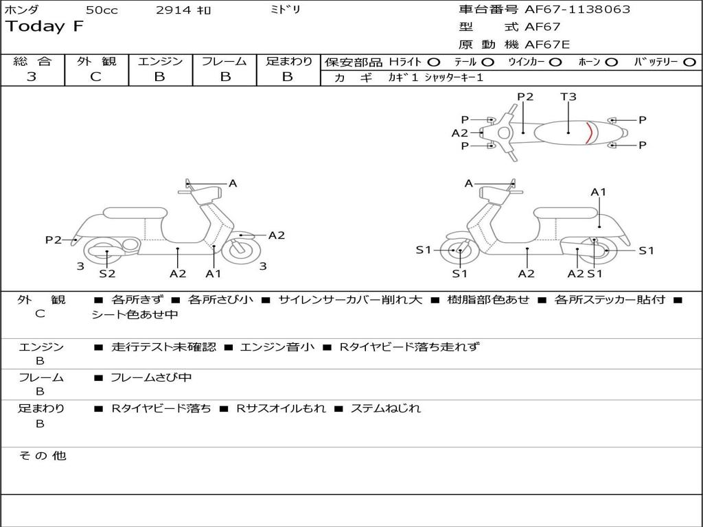 | Номер рамы / VIN | AF67-1138063 |