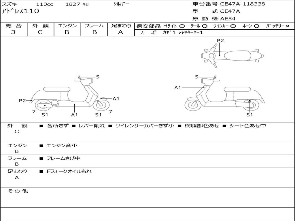 | Номер рамы / VIN | CE47A-118338 |