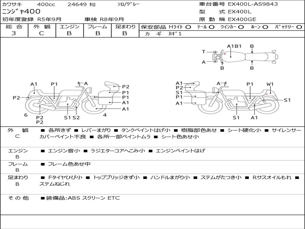 | Номер рамы / VIN | EX400L-AS9843 |
