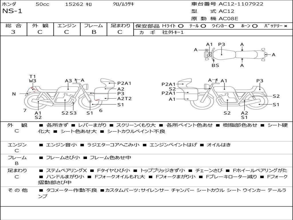 | Номер рамы / VIN | AC12-1107922 |