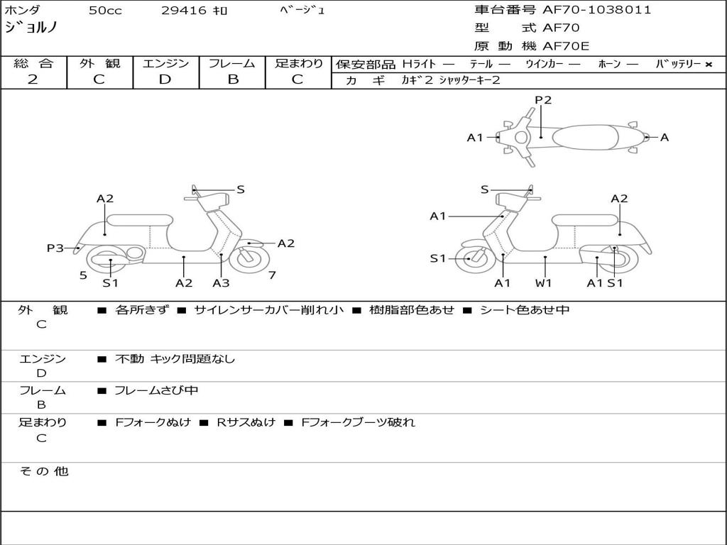 | Номер рамы / VIN | AF70-1038011 |