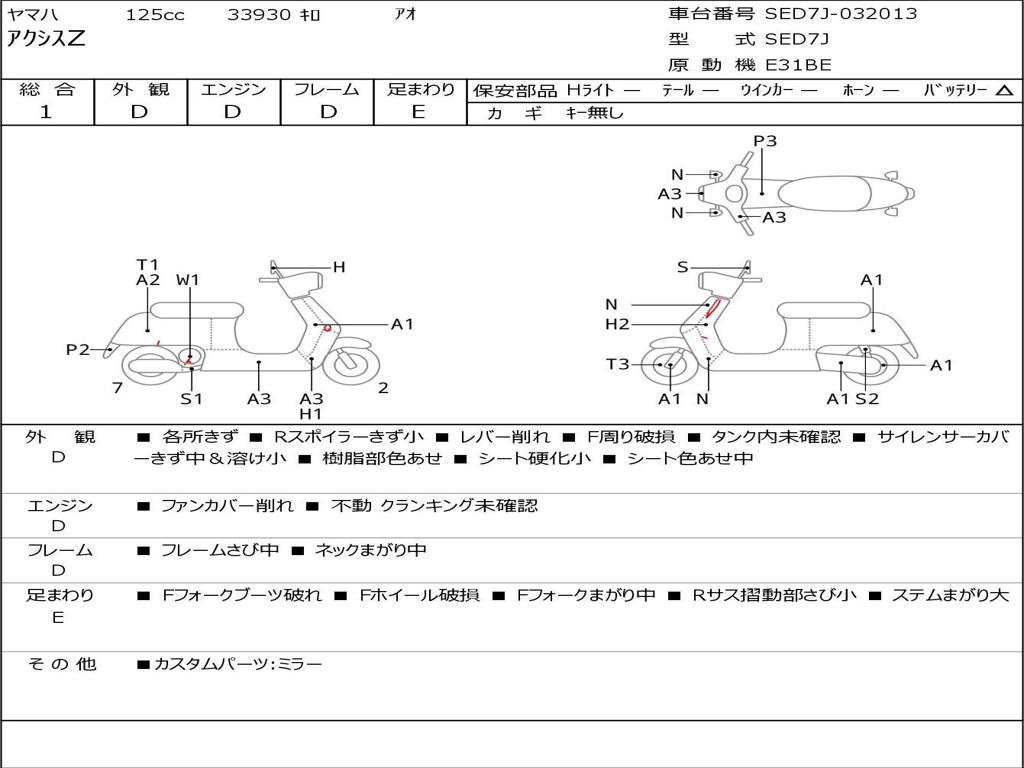 | Номер рамы / VIN | SED7J-032013 |