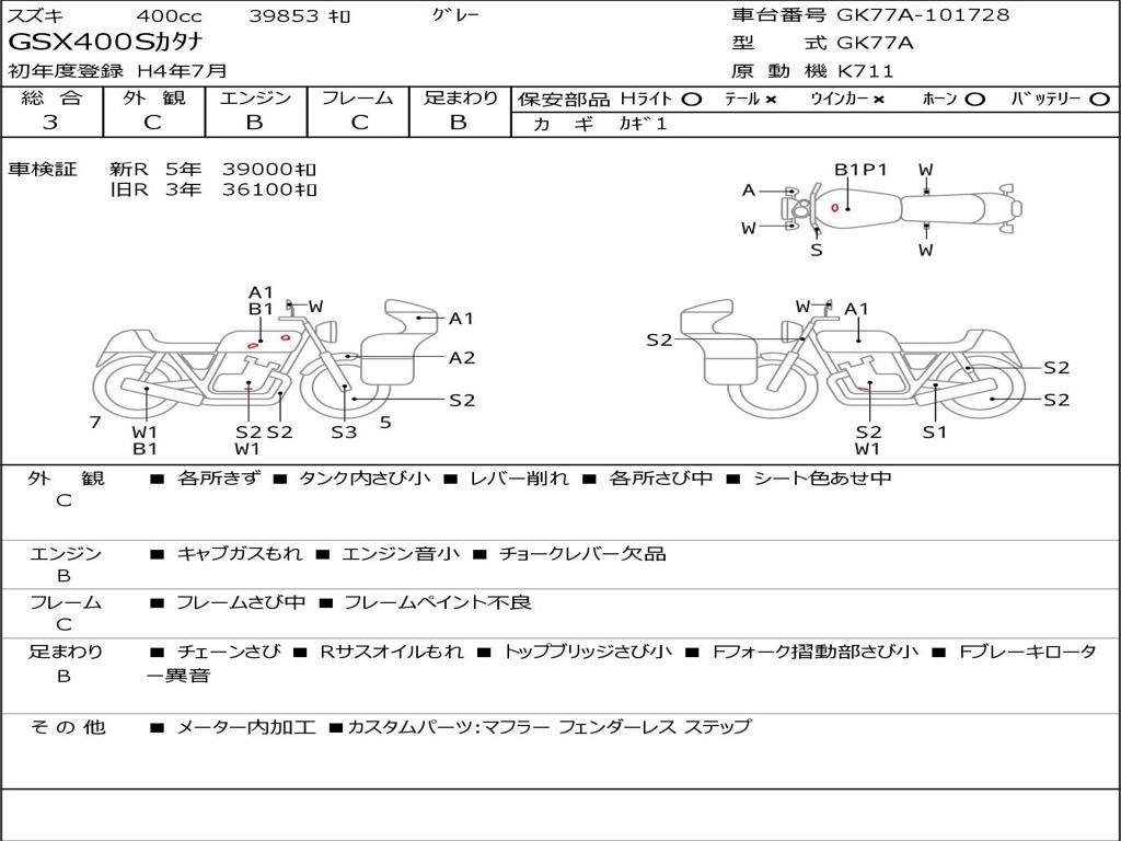 | Номер рамы / VIN | GK77A-101728 |