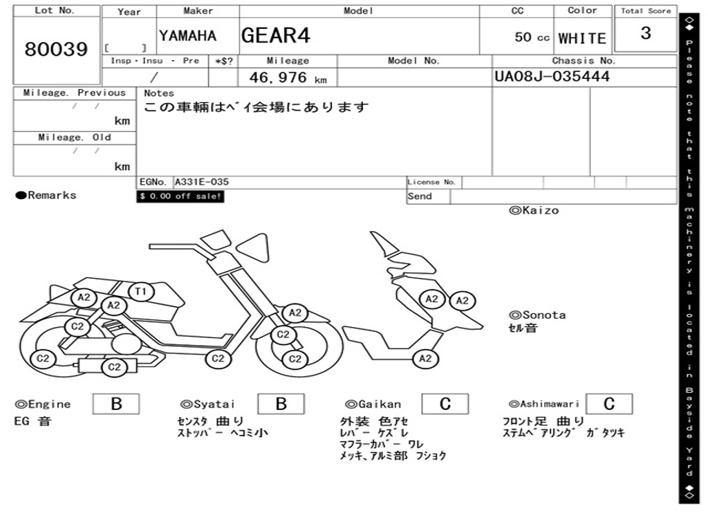 | Аукцион | ARAI BAYSIDE |