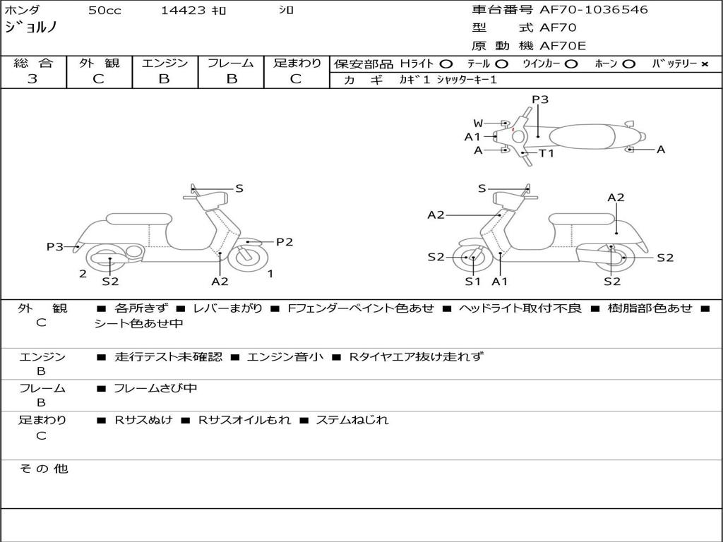 | Номер рамы / VIN | AF70-1036546 |