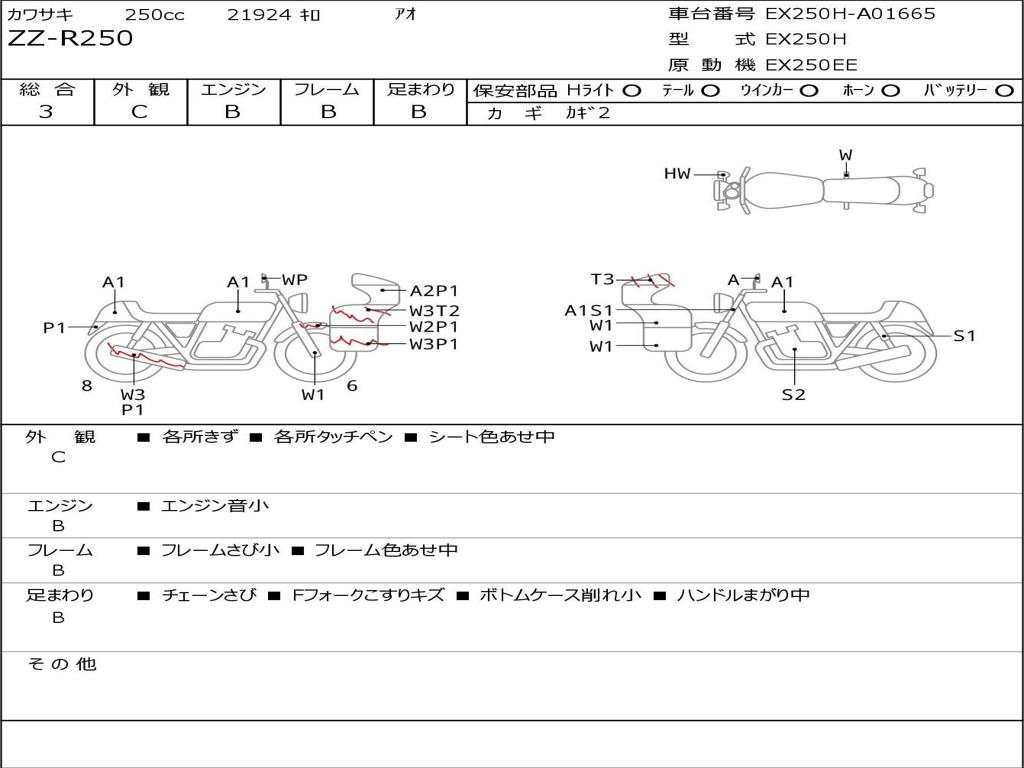 | Номер рамы / VIN | EX250H-A01665 |