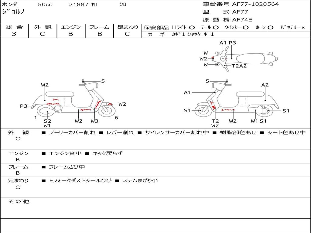 | Номер рамы / VIN | AF77-1020564 |