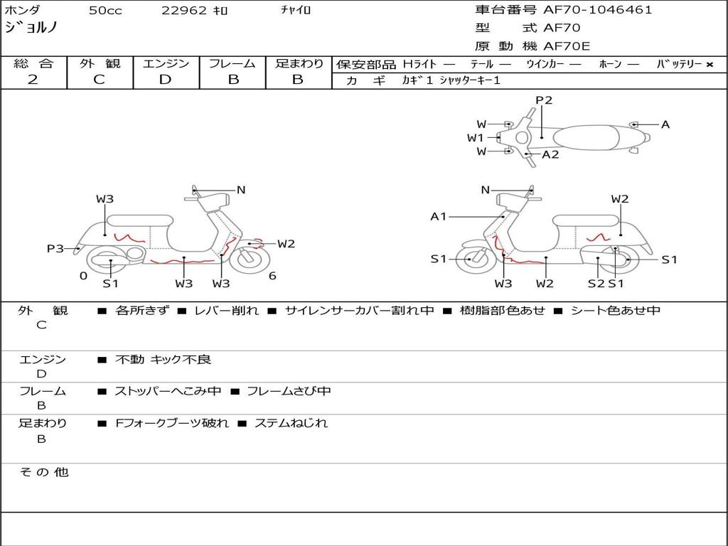 | Номер рамы / VIN | AF70-1046461 |