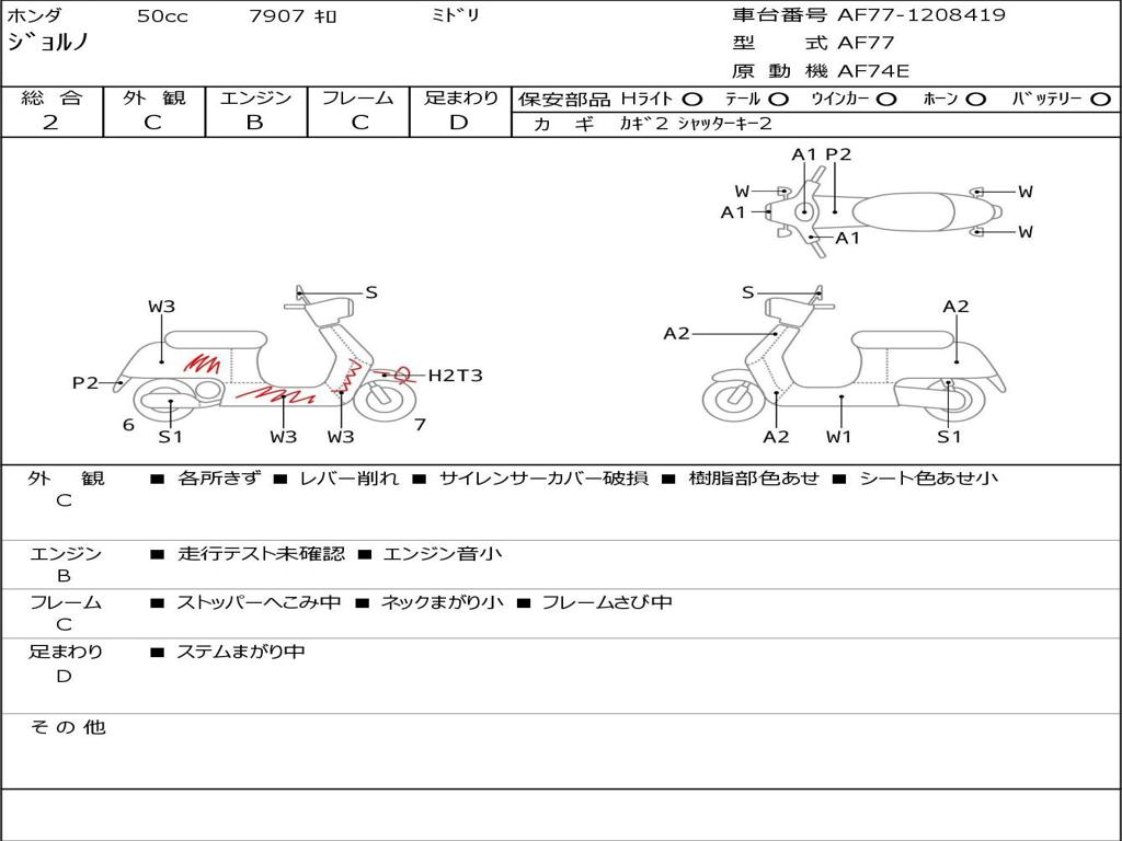 | Номер рамы / VIN | AF77-1208419 |