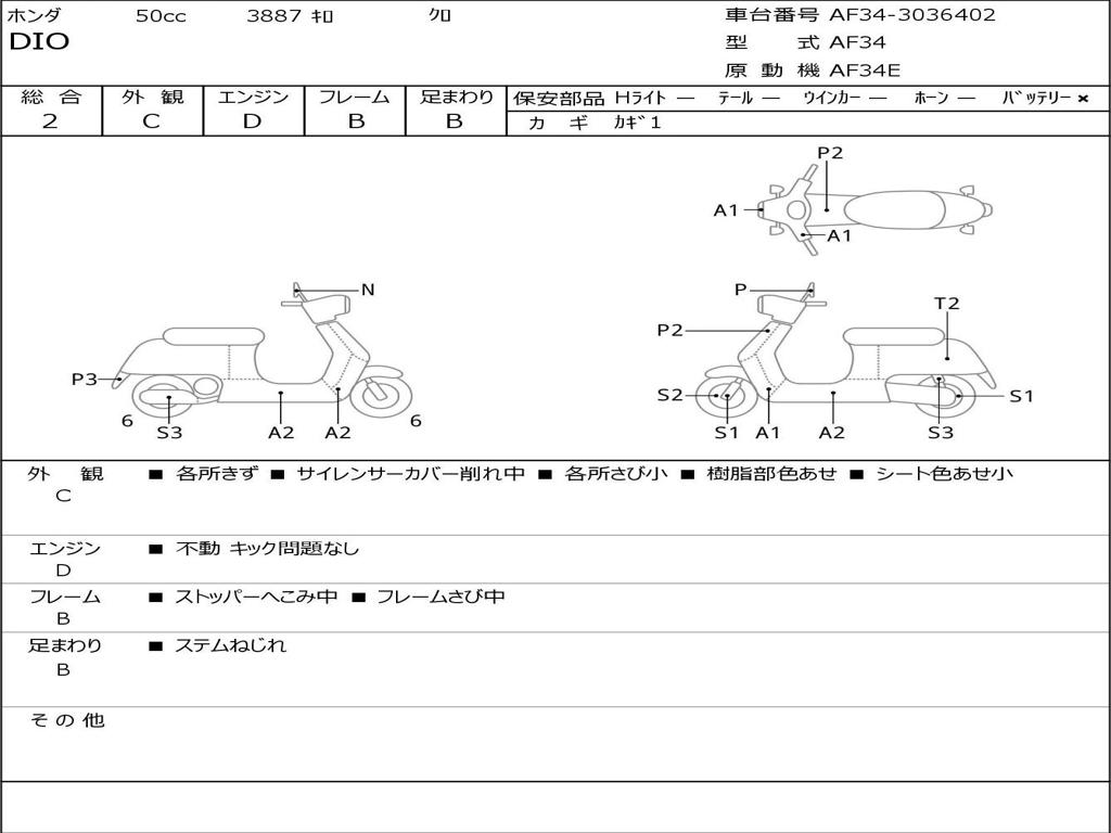 | Номер рамы / VIN | AF34-3036402 |