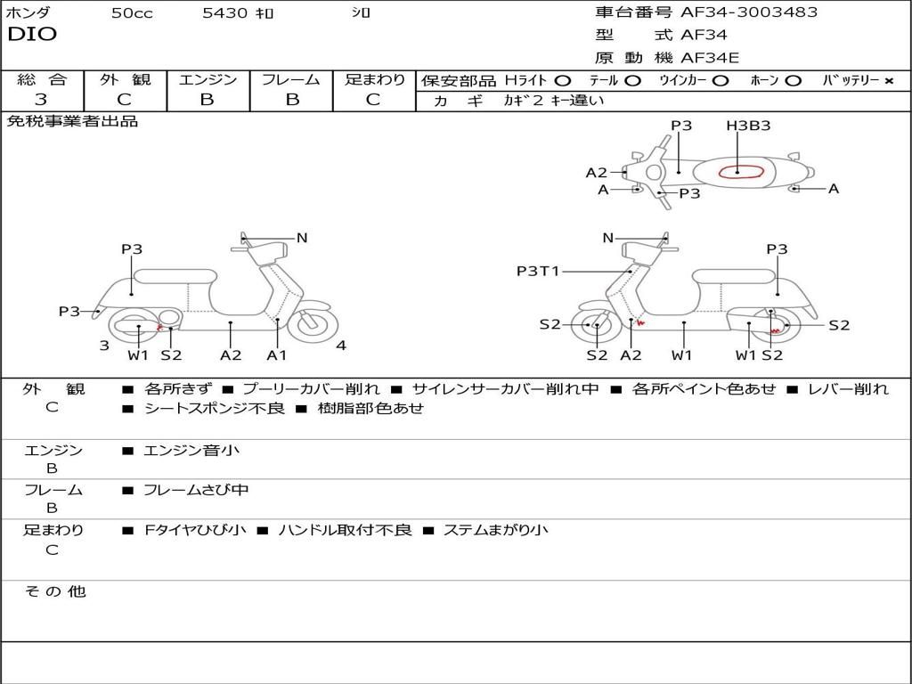 | Номер рамы / VIN | AF34-3003483 |